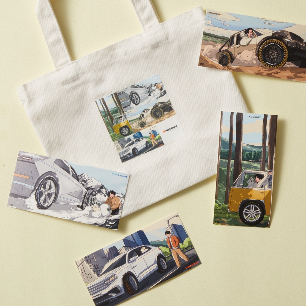 경품 이벤트도 함께 진행한다. 참여 방법은 한국타이어 글로벌 공식 인스타그램 채널 팔로우 및 ‘좋아요’ 버튼을 누른 후 ‘벤투스’, ‘다이나프로’, ‘키너지’, ‘윈터 아이셉트’ 등 한국타이어 상품 브랜드가 표현된 12개의 게시물 중 한 곳에 댓글로 브랜드명을 남기면 된다. 이 중 하나라도 정답을 맞춘 팔로워를 대상으로 추첨을 통해 총 100명에게 일러스트가 담긴 미니 에코백과 엽서 세트를 증정한다. 이벤트 기간은 12월 27일부터 2023년 1월 6일까지며 당첨자 발표는 1월 12일 한국타이어 글로벌 공식 인스타그램 채널을 통해 진행된다.